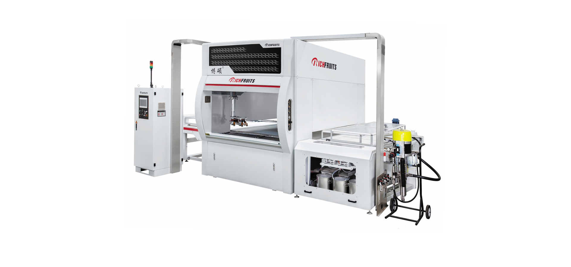 適用于實木家具、實木復(fù)合門、美式櫥柜、套房家具、衛(wèi)浴柜、展示柜、工藝品等板式工件的平面和四個側(cè)邊,針對UV、PU、AC、NC和水性漆等,進行高質(zhì)量效果連續(xù)自動噴漆,實現(xiàn)節(jié)能、環(huán)保和減少人工,提高產(chǎn)品質(zhì)量和生產(chǎn)效率。