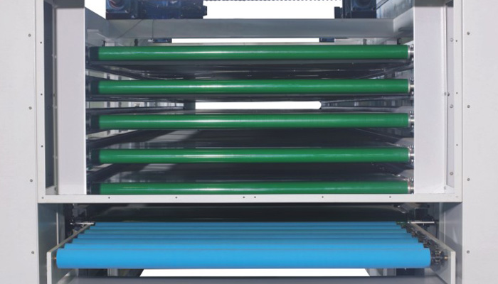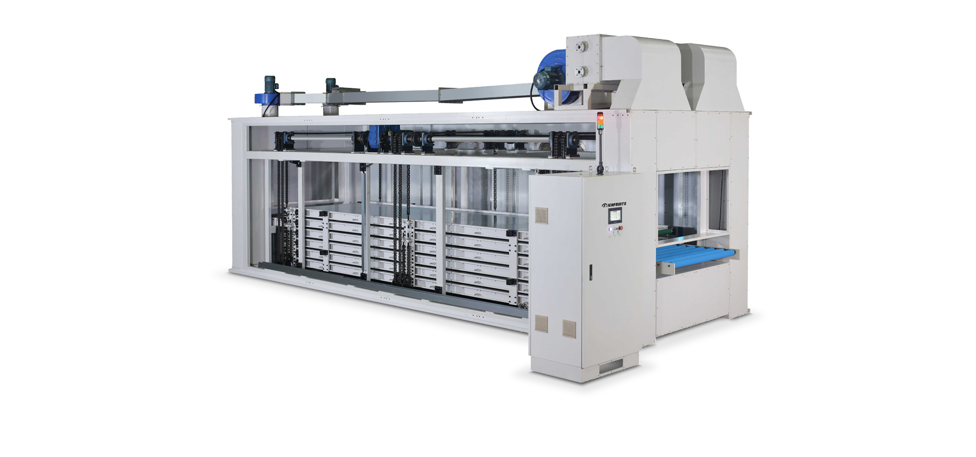利用機(jī)器上部空間,采用立體式結(jié)構(gòu),適用于規(guī)格較為統(tǒng)一的實(shí)木家具、實(shí)木復(fù)合門、美式櫥柜、套房家具、衛(wèi)浴柜、展示柜、工藝品、裝飾板等板式工件,進(jìn)行自動(dòng)化噴漆后3~6分鐘的立體流平,減少流水式干燥隧道的長度使用,節(jié)省場(chǎng)地。