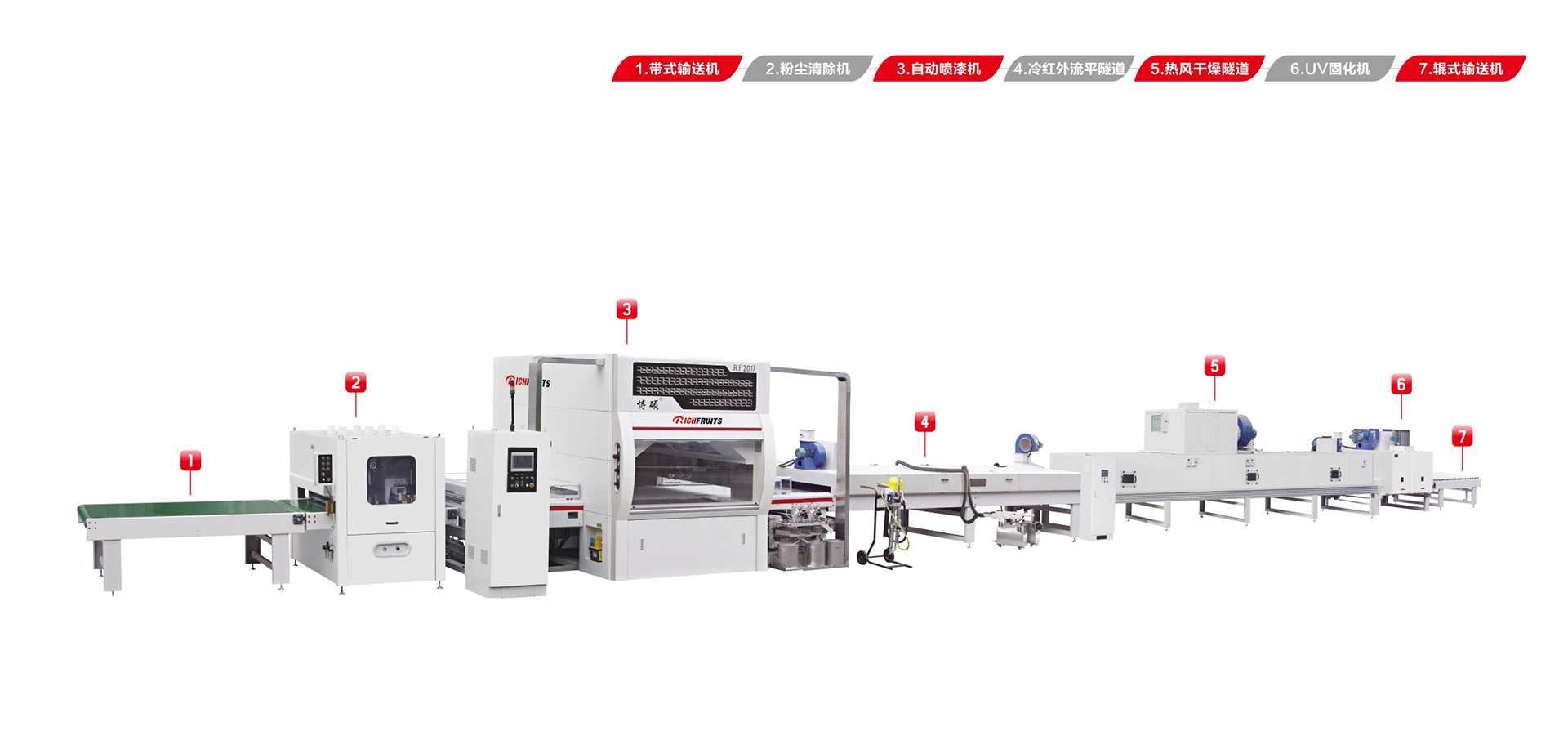 適用于板式家具、實(shí)木門、櫥柜門、工藝品、裝飾板、硅酸鈣板、玻鎂板、水泥纖維板的板式加工件的平面和四個(gè)側(cè)邊進(jìn)行高質(zhì)量、大批量連續(xù)噴漆。