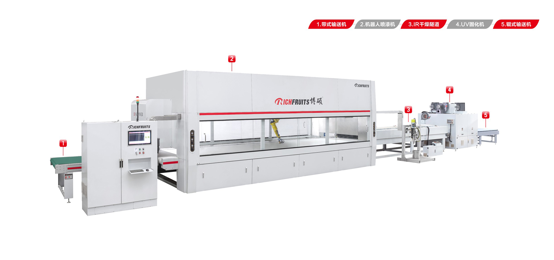 適用于板式家具、實(shí)木門、櫥柜門、工藝品、裝飾板、硅酸鈣板、玻鎂板、水泥纖維板的板式加工件的平面和四個(gè)側(cè)邊進(jìn)行高質(zhì)量、大批量連續(xù)噴漆。
