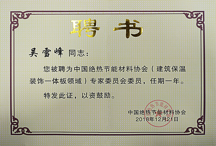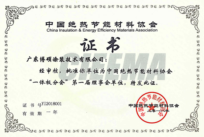 • 中國絕熱節(jié)能材料協(xié)會理事會單位證書