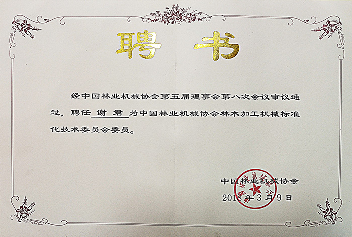 • 林機協(xié)會涂裝技術與裝備分會會長聘書