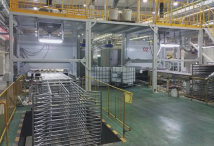 產(chǎn)品種類 外墻保溫裝飾一體板(水包水多彩漆、真石漆、水包砂) 產(chǎn)線數(shù)量 基板處理生產(chǎn)線1條、自動噴涂線1條 設(shè)備特色 整線自動化,從進(jìn)板到出板一次性完成。 生產(chǎn)產(chǎn)能 水包水多彩漆、真石漆、水包砂65萬平方米 油漆干燥方式 連線豎式折葉干燥隧道 生產(chǎn)人員數(shù)量 18人 廢氣廢水處理 光氧處理、水過濾循環(huán)處理 -