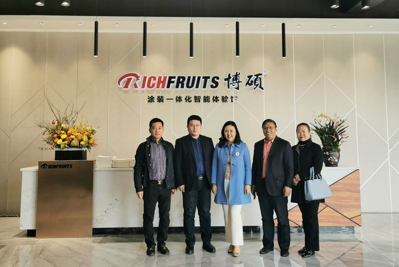 博碩涂一體化智能體驗館的開館不僅得到了行業(yè)內(nèi)的高度認可,政府也給予了厚望,12月6日下午,倫教鎮(zhèn)黨工委書記盧德全書記,黨工委委員、辦事處副主任、倫教經(jīng)科局局長羅冠明主任、倫教經(jīng)科局副局長李玉彥局長,環(huán)保局局長梁啟滔局長、周錫賢副局長一行到博碩“涂裝一體化智能體驗館”指導工作,深入了解涂裝智能化。