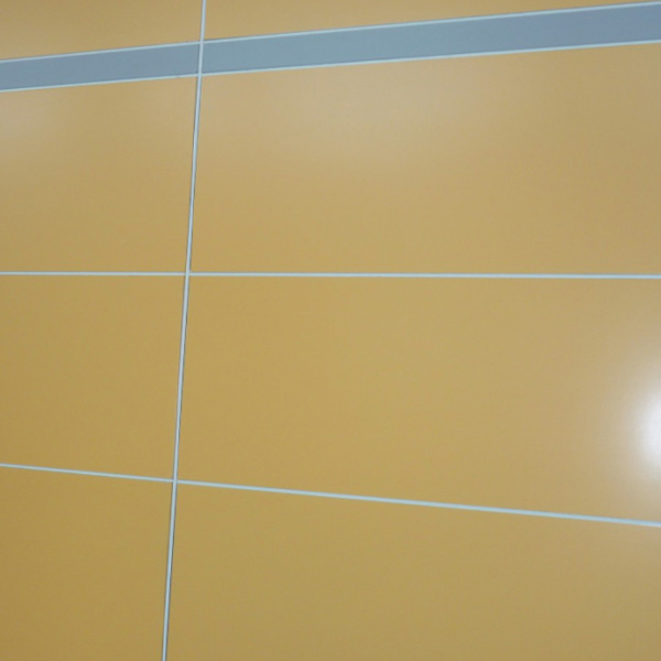 以中高密度纖維水性板/硅酸鈣板為基材,通過多層UV底漆輥涂和砂光,以及氟碳中涂和面漆輥涂,達(dá)到實色或銀粉氟碳漆的飾面效果,具有耐候性、耐熱性、耐低溫性、耐化學(xué)藥品性,并且具有良好的自潔性能。